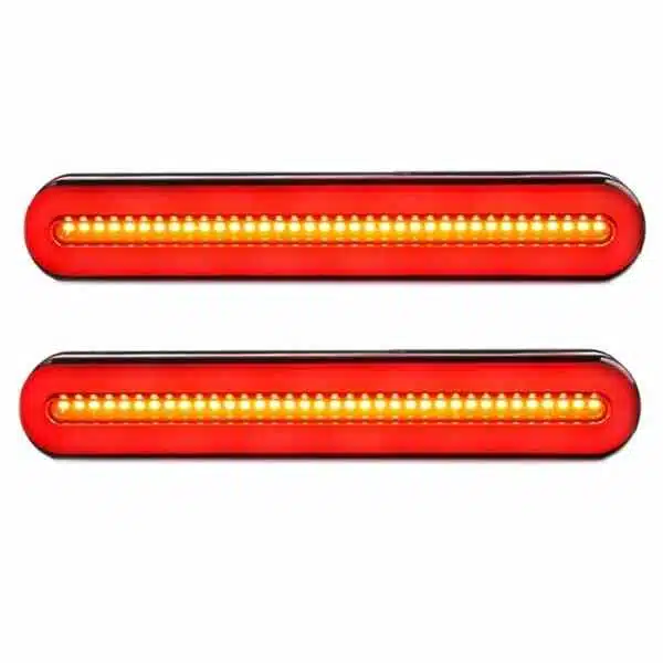 Engineered for everyday driving and demanding road conditions, these LED slim tail lights combine multiple lighting functions in one compact unit. They integrate driving, braking, and turn signal operations, delivering clear red illumination with high and low intensity, along with smooth-flowing yellow indicators. This ensures your signals are easily recognised by other road users, improving communication and overall road safety.
