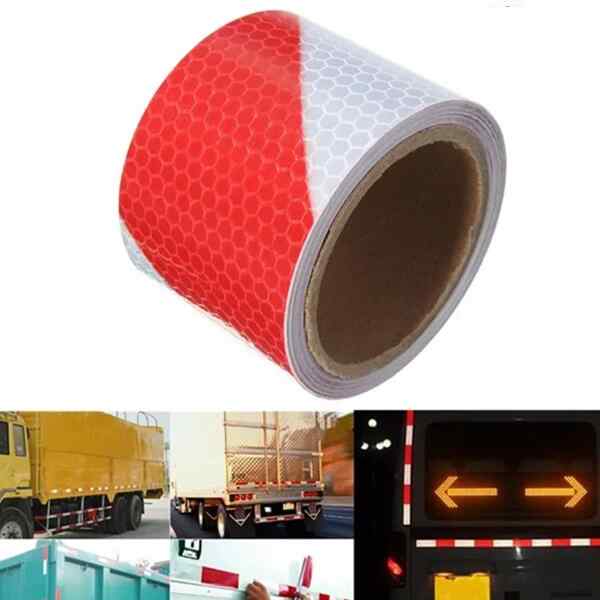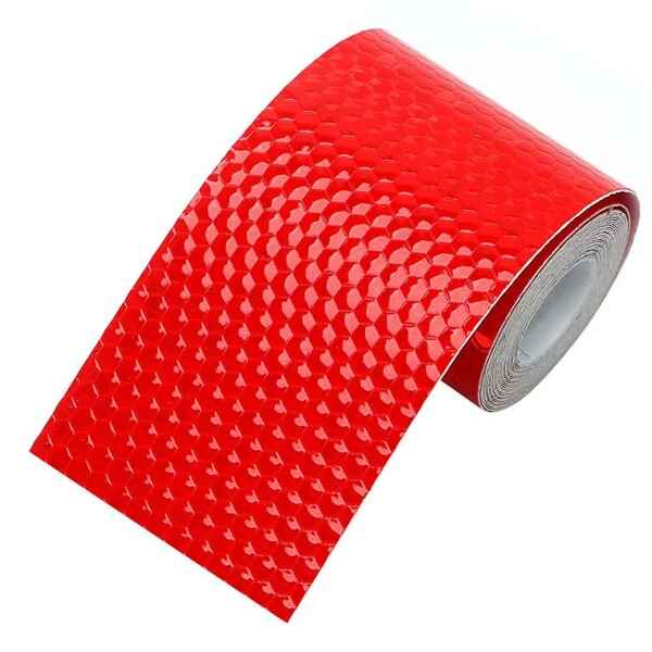 The tape features durable PVC film construction with a hexagonal honeycomb pattern that maximizes reflectivity. Waterproof, wear-resistant, and long-lasting, it withstands harsh outdoor conditions while maintaining strong adhesion. The red and white combination is ideal for trailers, outlining vehicle contours and improving visibility for other drivers.
